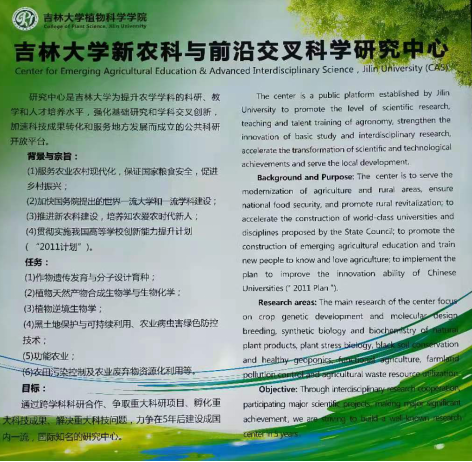 任务:中心开展的研究任务包括:(1)作物遗传发育与分子设计育种;(2)植物天然产物合成生物学与化学生物学;(3)植物逆境与营养、肥料和农药缓控;(4)黑土地综合保护与可持续利用、农业病虫害绿色防控技术;(5)功能农业与功能食品;(6)农田污染控制及农业废弃物资源化利用等。