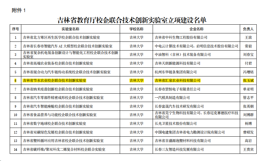 “吉林省节水农业校企联合技术创新实验室”是由吉林省教育厅、吉林省工业和信息化厅于2023年12月批准建设(吉教联〔2023〕94号),与吉林省汇泉农业科技有限公司联合申请创建,隶属于best365中国官方网站。