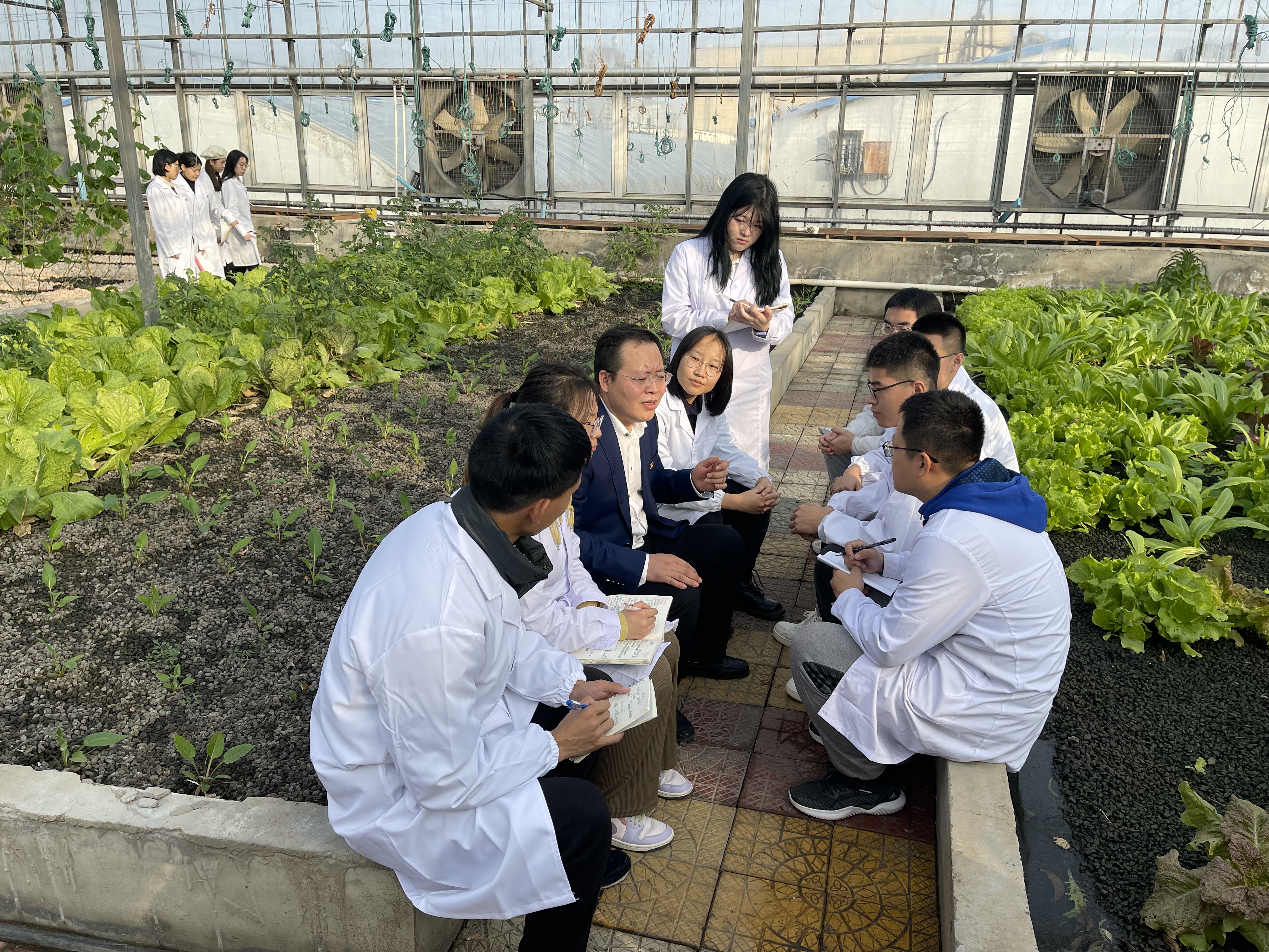 在学院鱼菜共生新农科基地,孙贺教授与在基地实习的师生一起交流学习党的二十大精神的体会,说感悟、谈收获,信心满怀、气氛热烈。孙贺教授就“怎样理解二十大报告将教育、科技、人才合并成为一章,放在第五部分‘实施科教兴国战略,强化现代化建设人才支撑’进行统筹部署,集中表达?”等问题进行逐一讲解回答。在场学生纷纷表示,党的二十大报告使他们振奋不已,作为实现中华民族伟大复兴的生力军,要牢记嘱托、砥砺奋进、努力学习,为祖国的建设添砖加瓦。