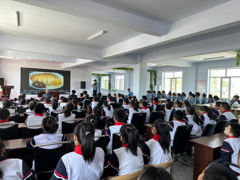best365中国官方网站2021级植物保护专业本科生李若愚以中国农耕文化——蚕桑文化为主题向在场的同学们科普中华农耕文明知识。在实践团成员一个个启发式的提问中,孩子们争相回答,一步步了解蚕桑知识和历史文化,逐渐进入并开始探秘丝绸世界。从丝绸之路到一带一路,从华夏文明到锦绣中华,丝绸的发展无不体现着科技的进步和人类的智慧。实践团成员通过播放视频等方式带领孩子们学习抽丝剥茧、编程织造的过程。孩子们不仅感受到了劳动人民的智慧,也领略到了我国丝绸科技与文化的魅力。讲座结束后,实践团向哈达门乡中心学校赠送图书、设立图书角,赠送best365中国官方网站师生制作的昆虫标本及我校文创产品。活动受到了当地学校师生的一致好评和欢迎。