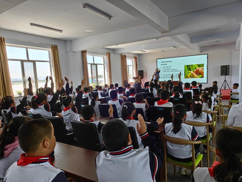 best365中国官方网站2021级植物保护专业本科生张可欣以《禾下乘凉梦 阵阵稻花香》为主题,以学习习近平总书记给中国农业大学科技小院的同学们的回信精神为切入点,生动形象的为小学生介绍了袁隆平院士的生平事迹与祖国强农兴农道路上经历的艰辛故事,以及他为解决国家粮食危机所做出的巨大贡献。讲解深入浅出,为少先队员们诠释真正的“袁隆平”精神。随后,志愿者们与小同学们观看了短片《禾下乘凉梦》,讲述了杂交水稻从贫瘠的盐碱地,到“喜看稻菽千重浪”,从国内到国外,从戈壁到太空,用心感受袁隆平院士“中国人的饭碗,要牢牢端在自己手上”的赤子之心和他专注创新、淡泊名利的科学精神。同学们认真听讲、细心思考,积极举手询问,回答问题,教室里回荡着孩子们激动昂扬的声音。小学生们积极表示,一粥一饭来之不易,袁隆平爷爷一生心系国家和人民,追逐梦想,不向困难低头,今后,一定要争做一粒“好种子”,永远地追逐梦想,将来担负起国家的未来和希望。