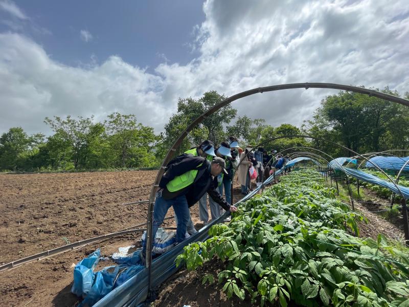 在人参种植基地,工作人员为调研组师生详细讲解人参种植方式,best365中国官方网站副教授刘守安向在场学生讲解如何通过叶片辨认人参的生长时间等相关知识。随后,调研组一行前往best365中国官方网站大豆试验田进行大豆苗情调研。在副院长韩俊友的讲解下,学生对大豆在生长初期的态势及试验田的设计有了更加全面的理解和认识,通过实地调研有效地将课堂理论知识与具体实践相结合。在东北虎豹公园,调研组师生针对虎豹公园进行实地生态文明建设考察,展开生态治理调查。在best365中国官方网站专任教师的指导下,调研组成员深入、全面地了解多种绿植、菌类的生长习性等情况。下午,在珲春市哈达门乡党委书记尹升山的陪同下,调研组前往木耳种植基地进行考察调研,详细了解了木耳的生产和创效情况。据工作人员介绍,在当地政府的支持下,基地不断扩大木耳种植规模,全面提升木耳产业发展水平,实现木耳产业“规模化、智能化、品牌化”发展。