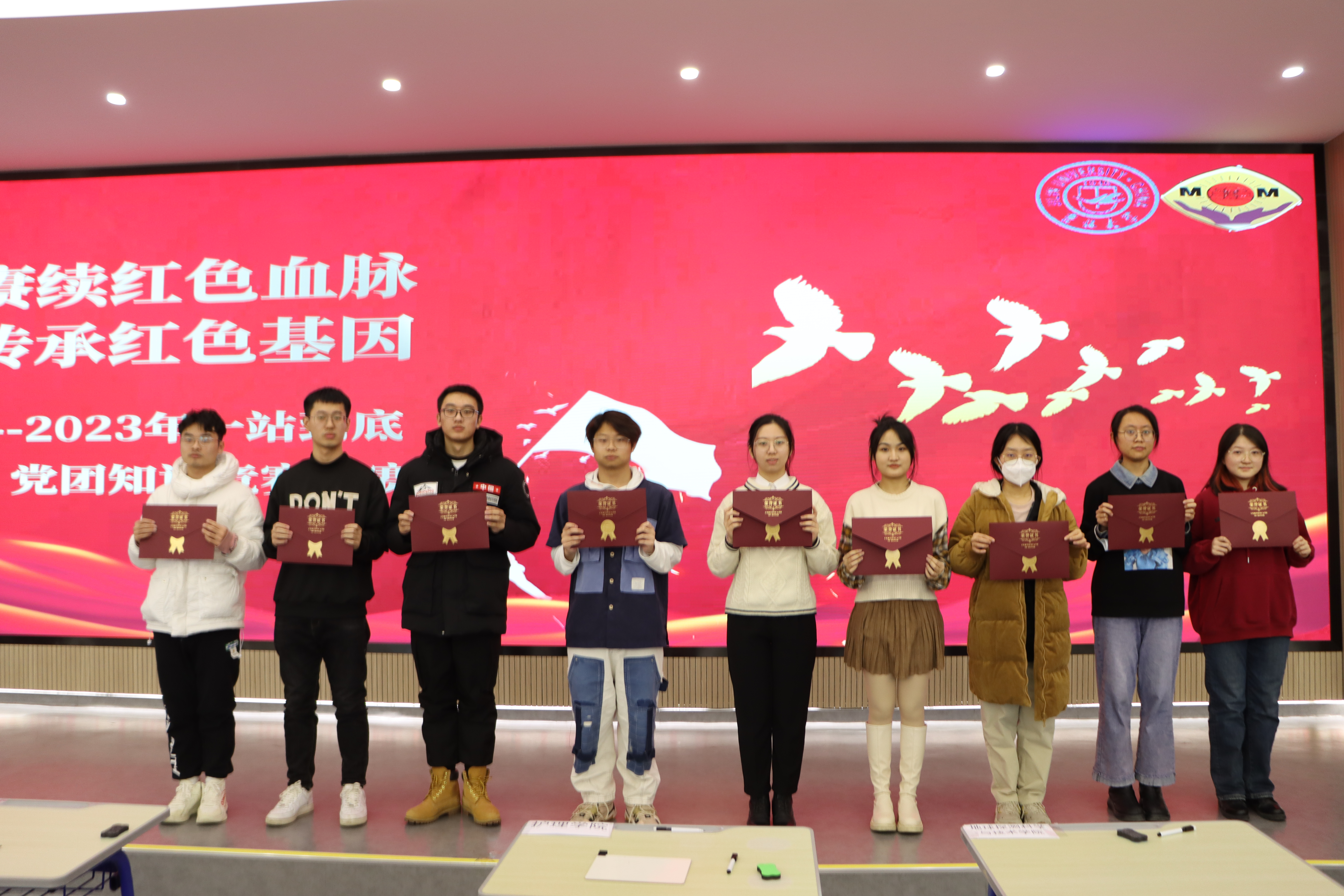 为深入学习贯彻习近平新时代中国特色社会主义思想和党的二十大精神,扎实开展青年学习贯彻习近平新时代中国特色社会主义思想主题教育,加强对学生的思想引领,营造良好的理论学习氛围,best365中国官方网站大学生M·M学习研究会联合护理学院M·M学习研究会在全校范围内举办的以“赓续红色血脉,传承红色基因”为主题的一站到底党团知识竞赛活动。学院团委高度重视本次活动,经院内选拔、培训,派出15名学生代表参与本次竞赛。本次党团知识竞赛活动初赛共有23个学院参与,我院参赛学生在初赛中披荆斩棘,以96.8分的总成绩位列第四,获得团体三等奖,成功晋级决赛。