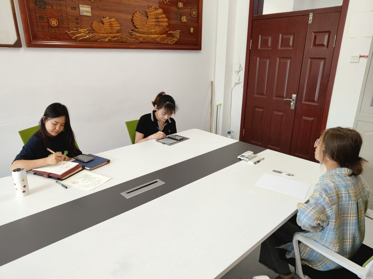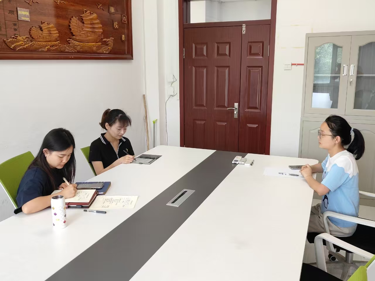 谈话中,老师们深入倾听毕业生在岗位选择、薪资预期、深造与就业抉择等方面的具体困惑与挑战,细致掌握其心理状态与职业规划。立足当前就业形势,结合学院往届成功案例,精准对标每位学生的专业能力、个人优势和职业兴趣,进行深度剖析与研判。从精准职业定位、拓展行业信息渠道,到务实调整求职心态与策略,提出了具针对性和可操作性的解决方案,力求“一人一策”见实效。