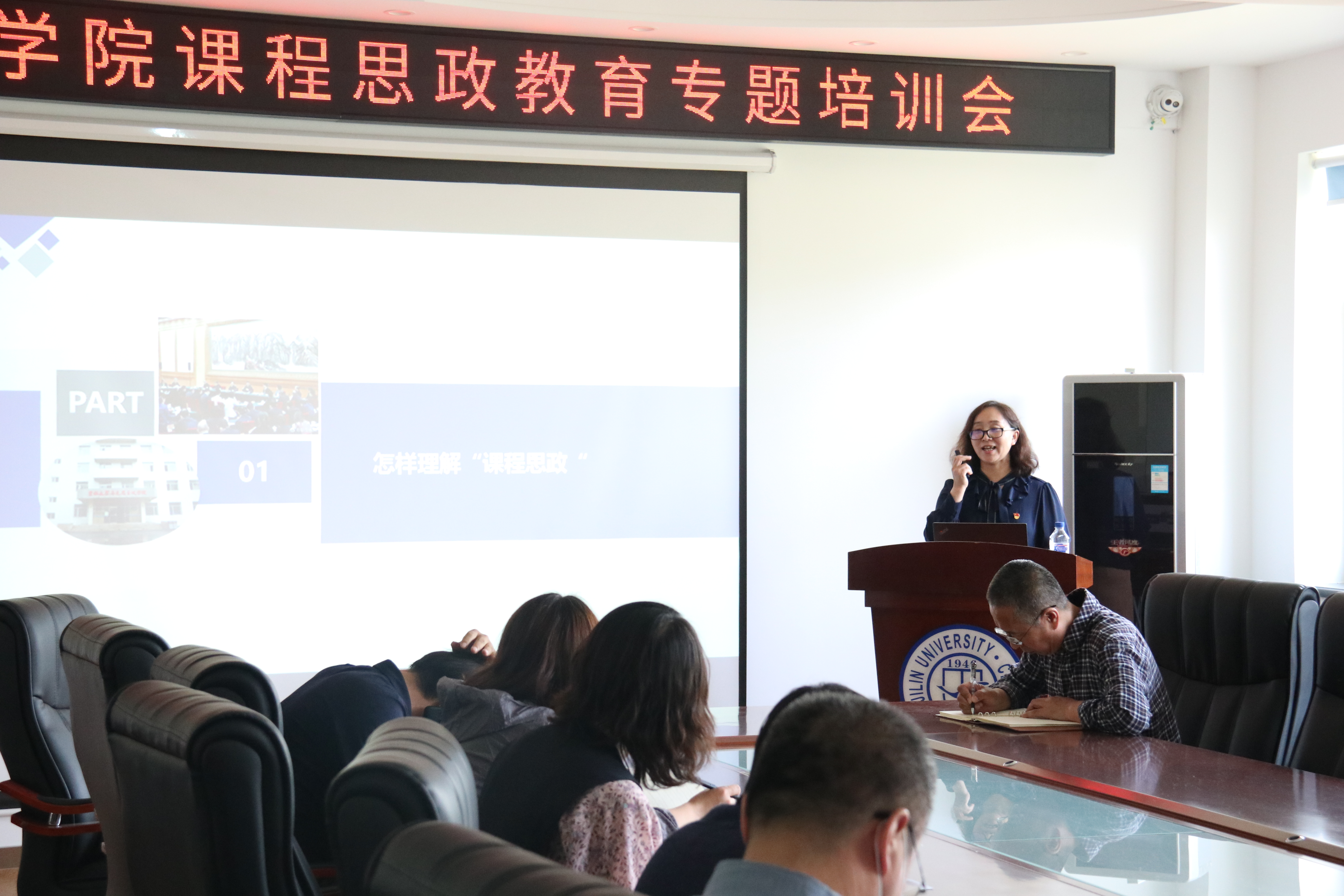 5月20日下午2:00,best365中国官方网站举办了“课程思政教育专题培训会”,会议邀请吉林省教学名师、匡亚明英才教授、马克思主义学院副院长石瑛教授,做了关于“课程思政 如盐入水”专题报告。报告会由副院长席景会教授主持,副院长秦建春教授,各系、实验教学中心和实习基地主任以及课程思政建设项目负责人等参加了本次报告会。
