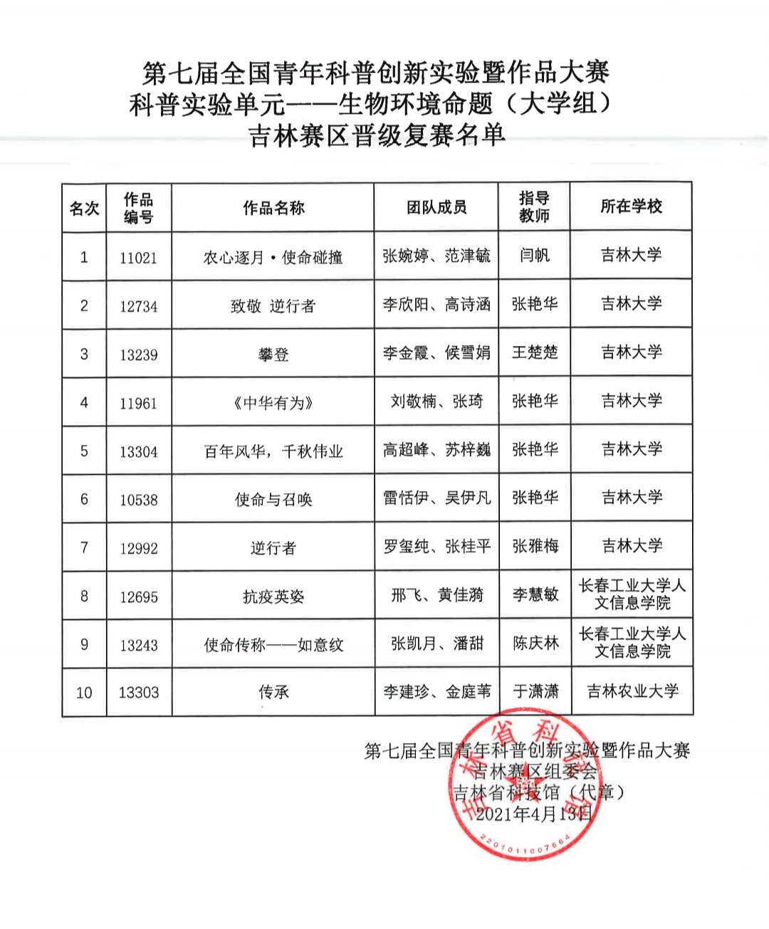 4月11日,由中国科协主办,中国科技馆、中国科协青少年科技中心承办的第七届全国青年科普创新实验暨作品大赛黑龙江—吉林赛区初赛在黑龙江省科技馆圆满落下帷幕,并且评选出了本赛区创意作品单元和科普实验单元各命题晋级复赛的队伍。我院参加了生物环境命题初赛,共有七组同学进入复赛。