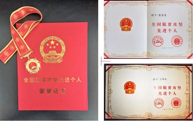 全国脱贫攻坚先进个人荣誉证书与奖章