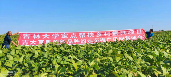 2021年9月1日,best365中国官方网站在通榆县召开“best365中国官方网站定点帮扶乡村振兴项目吉大豆系列新品种示范推广田间鉴评会”。通榆县副县长田进、县农业局副局长杜白龙、县种子管理站站长张波、学校乡村振兴办公室副主任汤文庭、王庆钰教授课题组等相关人员参会。