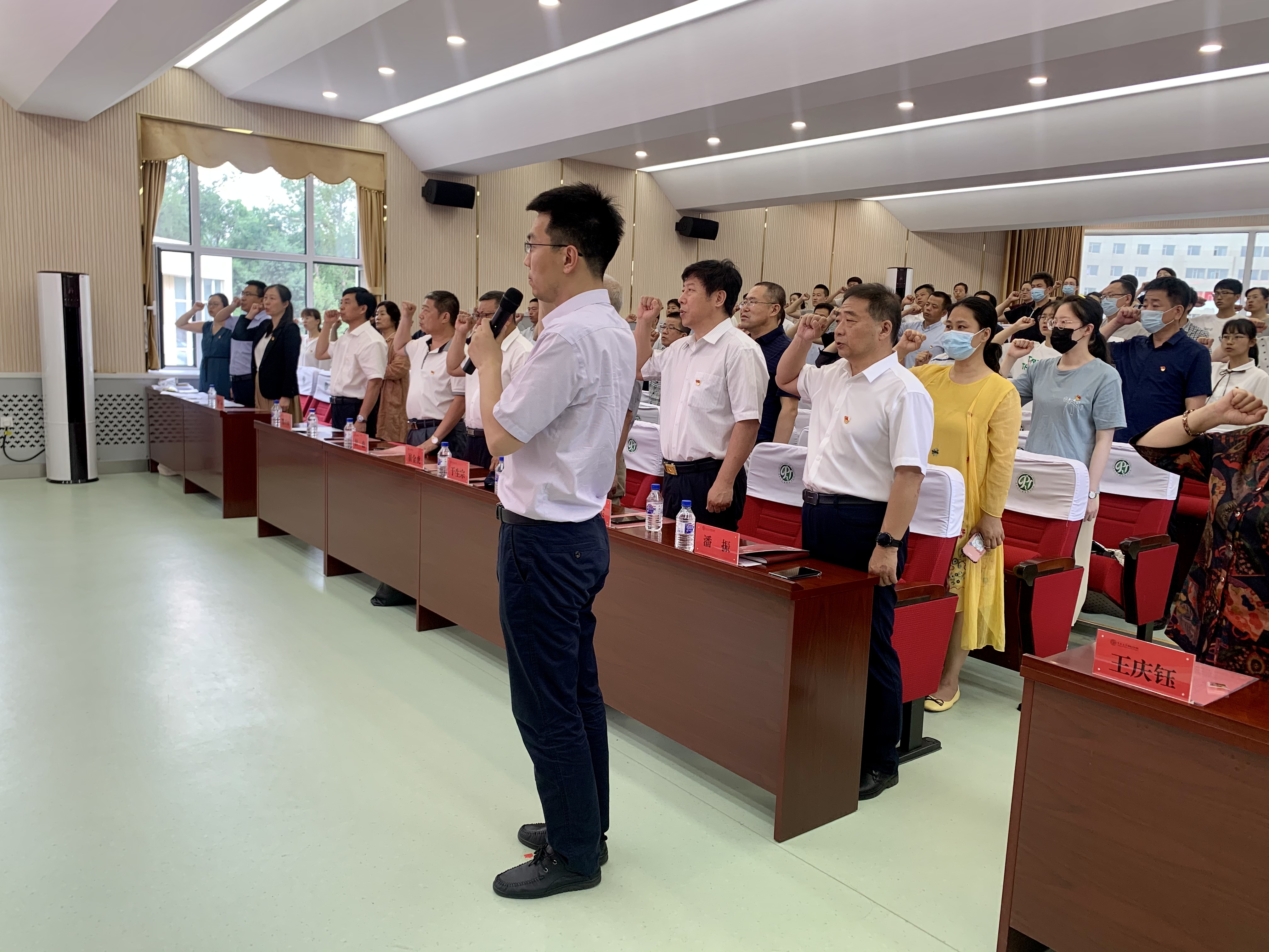 大会在雄壮的国歌声中拉开帷幕,与会人员共同观看《中国共产党百年述职报告》视频短片,从“生是为中国,死是为中国”的誓言中感受“报国之姿”;从“越激流险滩,穿惊涛骇浪”的脚步中感受“奋斗之姿”;从“为人名谋福,为民族复兴”的真情中感受“爱民之姿”。