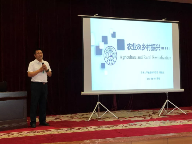 ▲best365中国官方网站副院长韩俊友教授在珲春市进行功能农业讲座