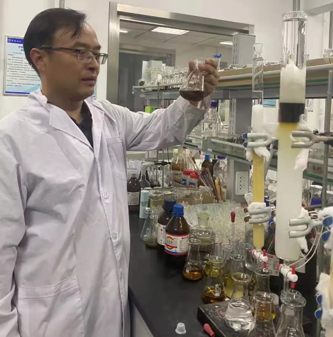 ▲秦建春在实验室研究植物化学成分