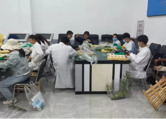▲秦建春教授指导本科生做植物标本(左图)