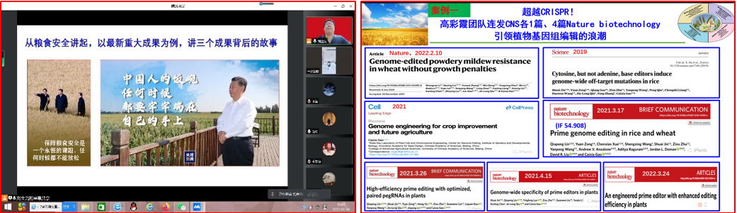 创新始终是推动一个国家、一个民族向前发展的重要力量。科学研究要求实创新,服务社会。3月30日晚7:00,刘金亮教授围绕“科研创新与科研突破的条件和素质”这一主题,首先从粮食安全这一国家战略需求讲起,以三个最新的与粮食安全密切相关的重大突破性成果为例,讲了三个成果的研究背景、成果内容、科研突破、重大意义及其背后的故事,重点与大家分享了重大成果产出所具备的基本要素。接着刘老师从科研工作者进行科学研究时都需要做什么,强调了阅读文献对科研的重要性,讲述了怎样更好地查阅文献、管理文献,尤其是在信息爆炸时代充分利用微信科研公众号和生物信息学手段,加快科研进度;随后,刘老师分享了李家洋院士接受《Cell》专访时提到的科研属性和素养及施一公院士强调的做科研的必要条件;最后,刘老师结合自己多年的科研经历,分享了研究生科研创新的几点技巧。
