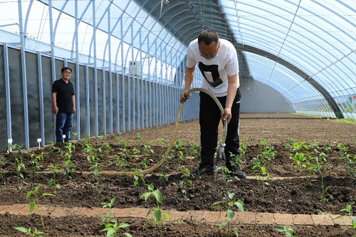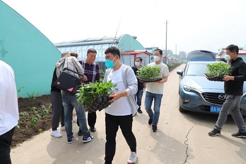 在占林农业基地的零耗能智能温室大棚内,大家将植物学院郭庆勋老师繁育的9种辣椒秧苗移栽到田间,占林农业董事长“best365中国官方网站大学生人生导师”杨占林先生亲自示范备垄、施肥、移栽、浇水等操作细节,支部党员一齐动手,分工协作,秧苗横成排、纵成列,整齐的移栽到田间。随后大家又进行了室外除草和果蔬采收活动,近30度的高温使大家挥汗如雨,但全体党员热情高涨,在农事劳动中度过了一个充实的上午。支部联系领导韩俊友副院长全程参与了劳动。