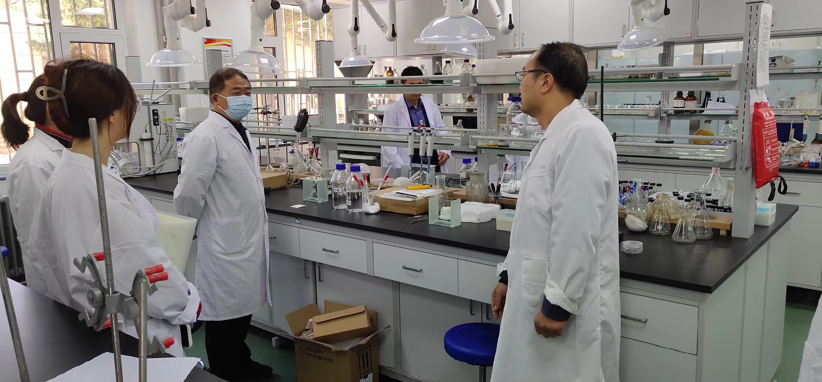 检查组对实验室用水、用电、化学试剂、仪器设备、危废分类等情况进行了摸排,梳理出管控试剂不入柜不上锁、消防器材摆放不当、高温高压设备使用记录不详、实验台脏乱等安全隐患,并提出了建设性的整改措施和建议。要求各实验室严格落实安全管理自查自纠工作,对发现的安全隐患举一反三,并立即采取整改行动,尽快完成整改任务。