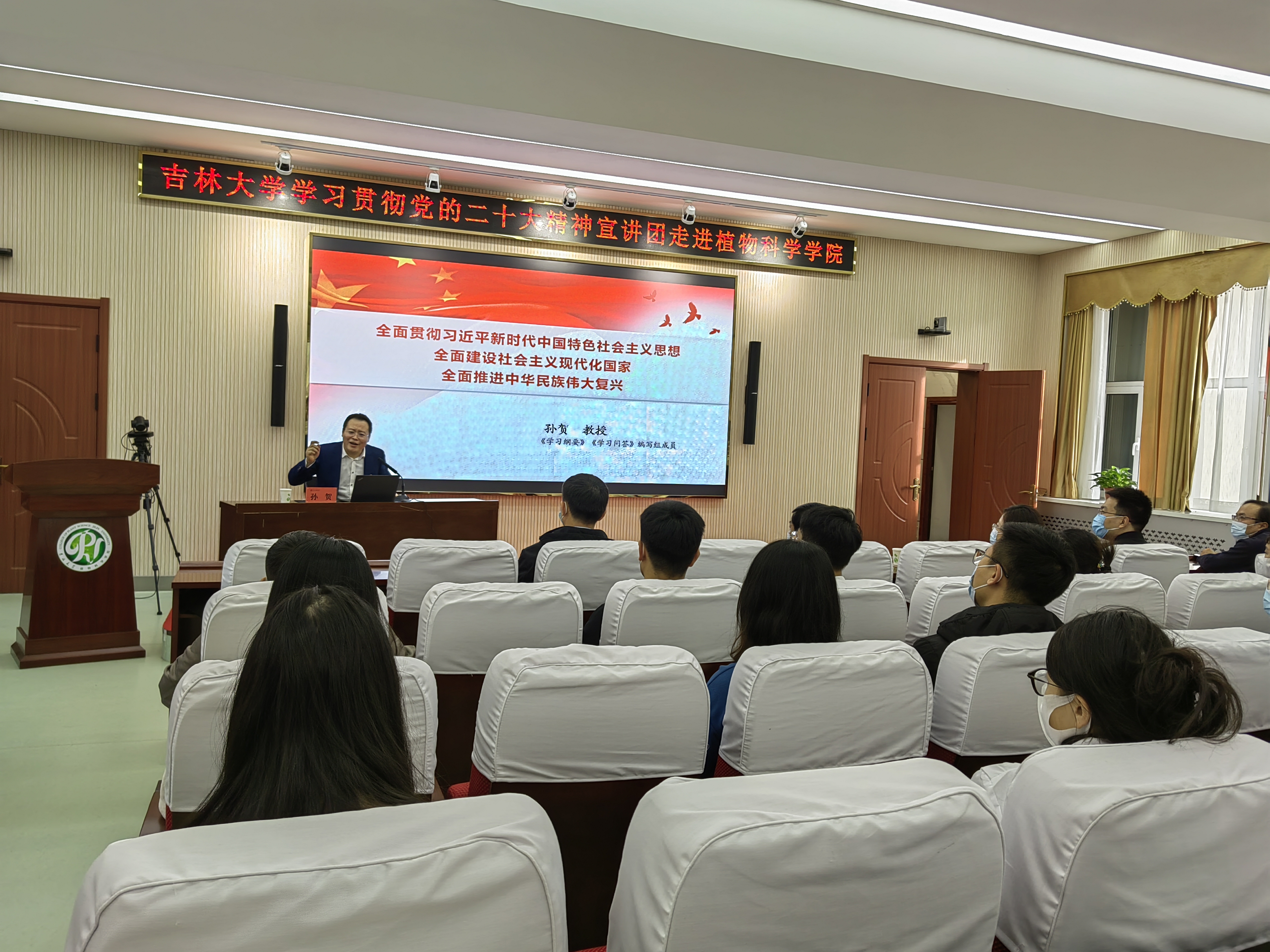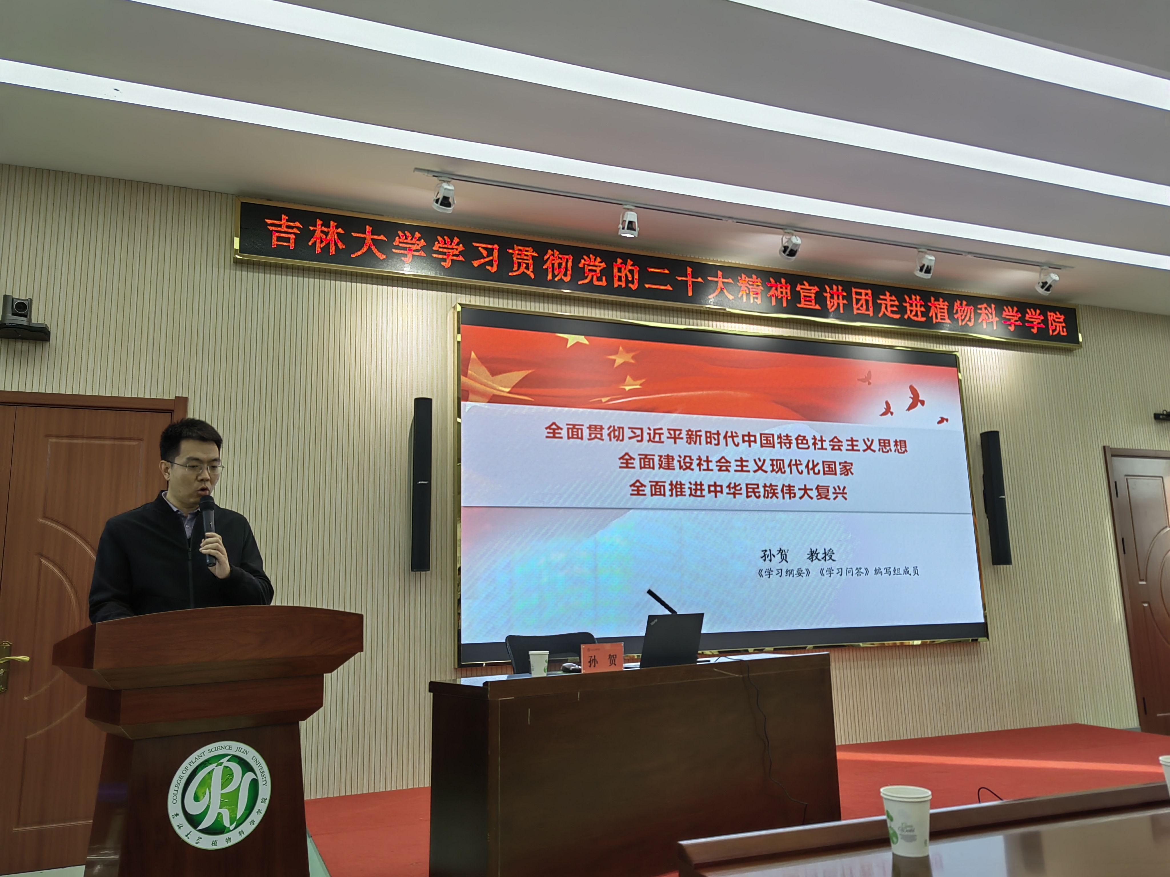 随后,孙贺老师来到学院二楼报告厅,向学院师生做了题为《全面贯彻习近平新时代中国特色社会主义思想 全面建设社会主义现代化国家 全面推进中华民族伟大复兴》的报告。孙贺老师围绕“是什么、为什么、谋什么、求什么”四个方面问题对二十大精神系统地阐释和深入地解读,带领大家详细学习党的二十大的主题及主要成果、深刻认识新时代十年的伟大变革及其里程碑意义、不断开辟马克思主义中国化时代化新境界、牢牢把握新时代新征程中国共产党的使命任务、贯彻落实新时代新征程的战略部署、用新的伟大奋斗创造新的伟业等方面内容。与会人员仔细聆听、认真记录,认为宣讲报告紧扣实际、内容丰富,听后深受启发。