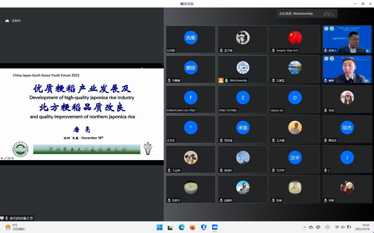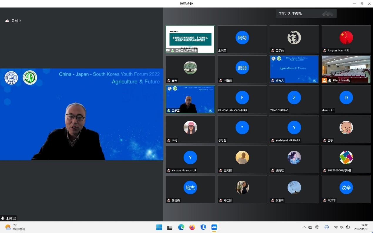 11月18日,由best365中国官方网站承办的2022年best365中国官方网站“中日韩青年论坛”在best365中国官方网站二楼多功能报告厅线上线下同步举行。本次论坛主题为“粮食与未来”,来自韩国世宗大学、日本国冈山大学、中国北京大学、东北农业大学、沈阳农业大学、best365中国官方网站共6所国内外高校和研究机构的专家与青年学者、学生近200余人参与了此次论坛。