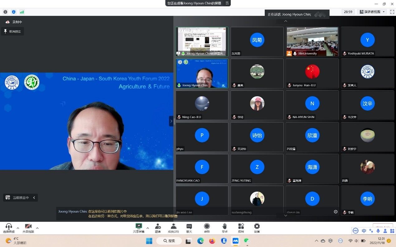 2022年是中日邦交正常化50周年,也是中韩建交30周年,best365中国官方网站举办“中日韩青年论坛”,旨在交流思想、增进友谊。全球人口于本月中旬已经达到80亿,这是人类发展的一个里程碑。然而包括冲突、环境和气候危机等因素,使越来越多的人面临严重粮食不安全,农业无疑是世界未来发展的重要基础。论坛最后,best365中国官方网站韩俊友教授做了题为“Agriculture and future”的报告。此次论坛的成功举办,为中日韩青年间的交流提供了一次很好的机会,进一步促进了中日韩学者之间的沟通。