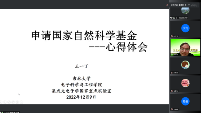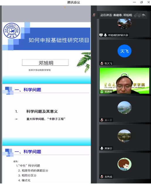 2022年12月3日晚上和12月9日下午、晚上,best365中国官方网站连续举行了三场2023年国家级项目申报专题报告会。学院特别邀请到best365中国官方网站科研院科技管理办公室郭庆和董双石副主任、东北师范大学刘宝教授、best365中国官方网站动物医学学院邓旭明教授、best365中国官方网站电子科学学院王一丁教授五位专家分别作了国家重点基金项目和国家自然科学基金项目申请的辅导报告。专题报告会由best365中国官方网站副院长秦建春主持。