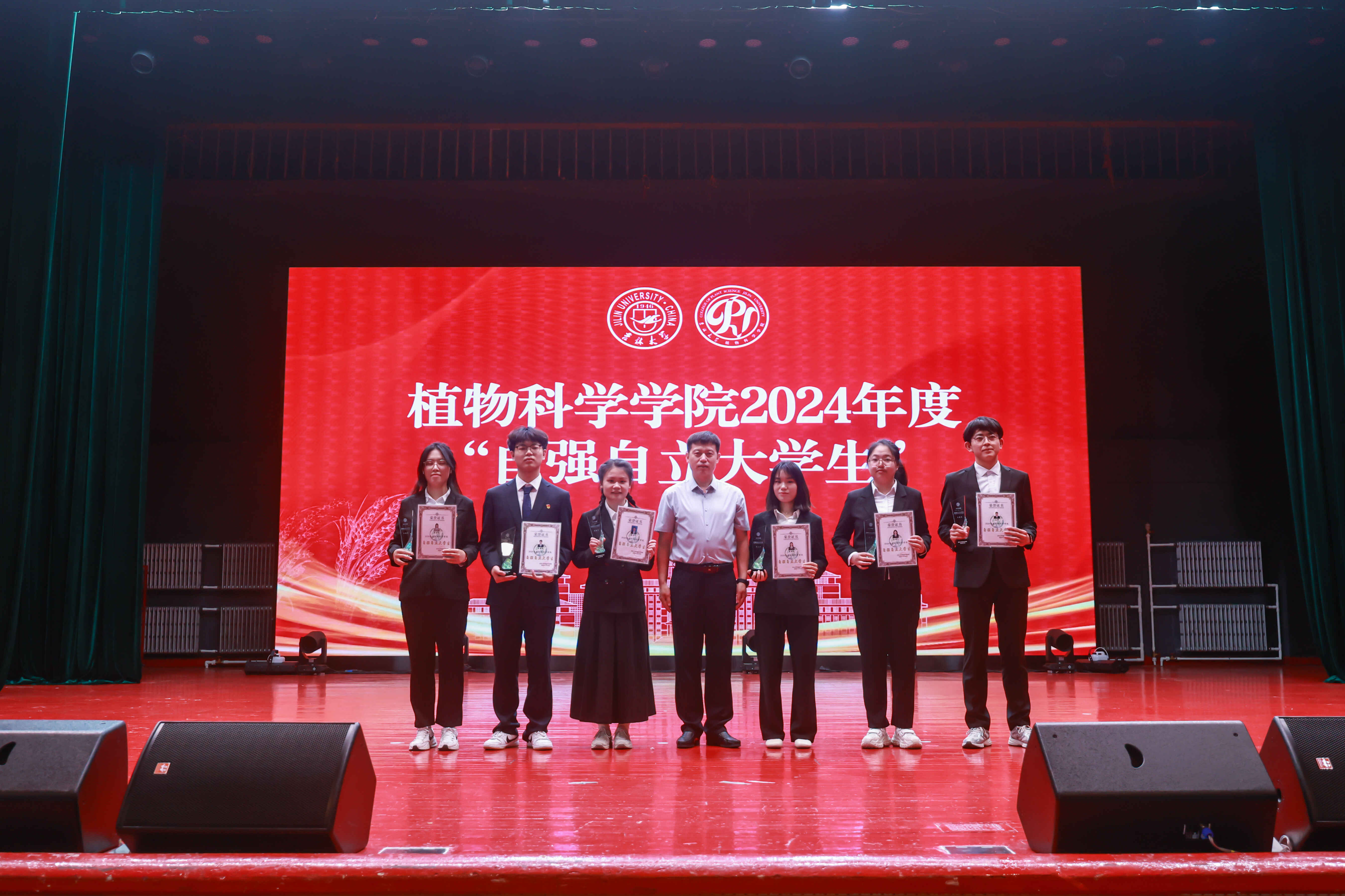 刘效森为学院2024年度“杰出大学生”“自强自立大学生”荣誉称号获得者颁发证书及奖杯。这不仅是对优秀学子过往努力的肯定,更是对植科学子追求卓越、自强不息精神的褒扬。