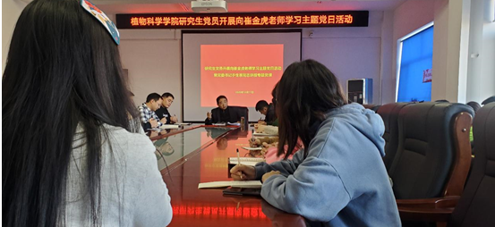 会上,研究生党员积极发言,纷纷表示青年一代党员同志要励志肩负起党员的责任,不辜负国家的厚望,全体研究生党员以崔金虎老师为榜样,勤奋学习,心系祖国,以学农为荣,以从事农业科学研究为傲,时刻准备着将科研知识转化为实践以回馈祖国与人民。