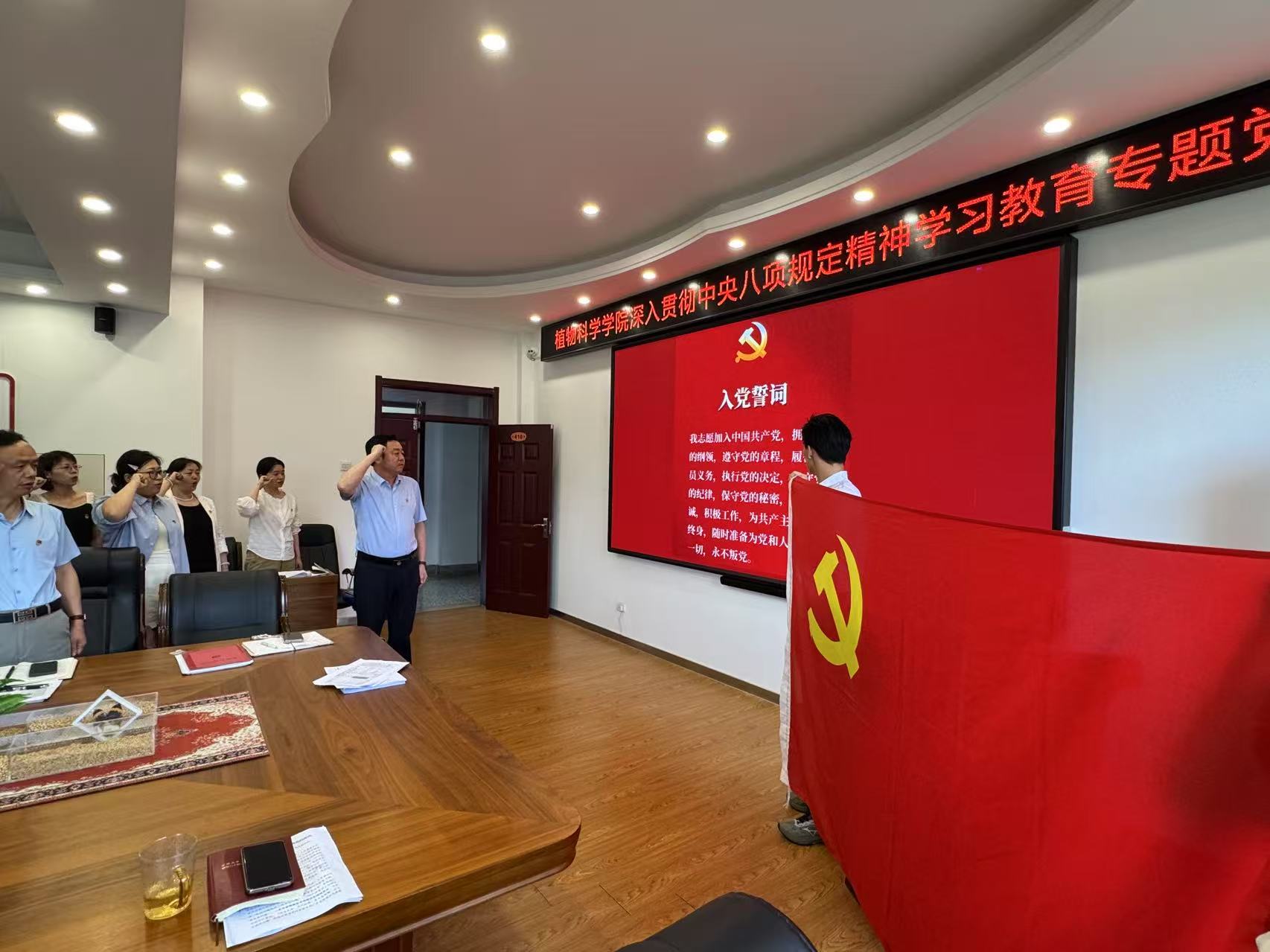 为庆祝中国共产党成立104周年,扎实推进学习教育走深走实,7月4日下午,best365中国官方网站党委开展专题党课暨重温入党誓词活动。党委书记田进以《深学细悟习近平总书记关于加强党的作风建设的重要论述》为题,为学院中层以上党员干部讲授专题党课,学院党建联络员高福和同志列席会议。