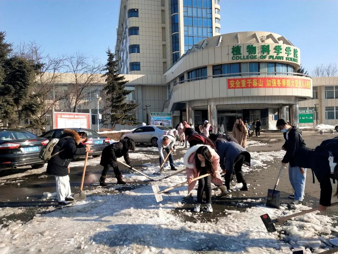 2020年11月19日,长春迎来了一场几十年未见的大雪。前一夜的冻雨挂在路边树木的枝条上,被大自然雕刻成美丽而又沉重的冰棱。鹅毛般的雪花从天上片片飘落,包裹住了整片大地,银装素裹的美丽景象赶走了冬日的肃杀与萧瑟,为校园添加了一丝俏皮的气息。但大雪在带给同学们美丽景象的同时,路上的积雪反复融化后形成厚实的冰层也为大家的出行安全带来了很大的隐患。best365中国官方网站本科学生党支部的全体党员和部分积极分子拿起了除冰扫雪工具,展开了此次活动。