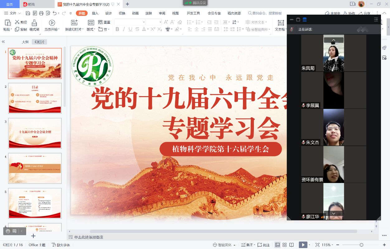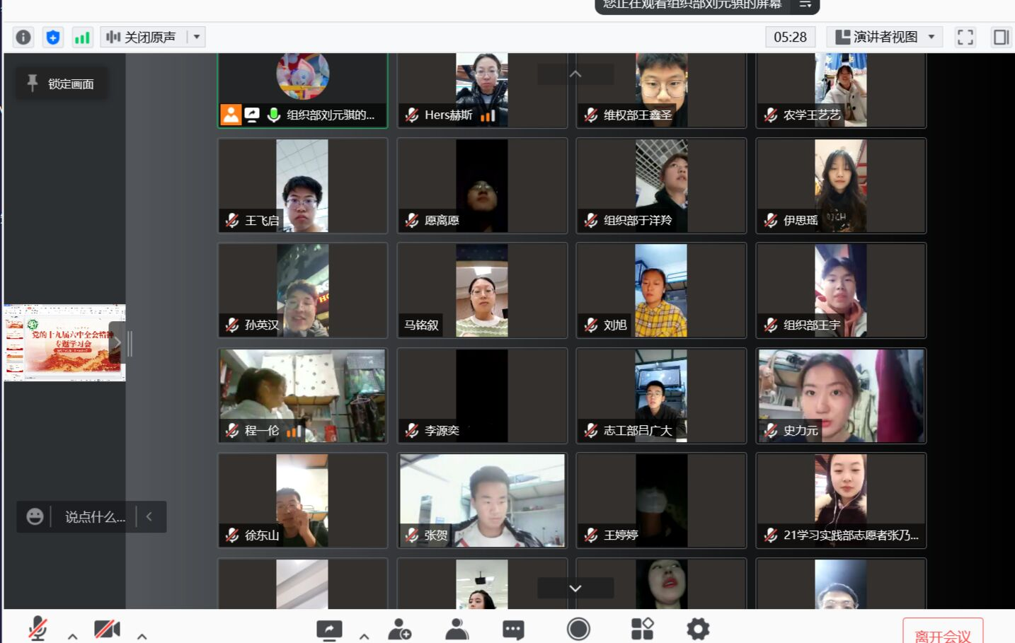 11月8日至11日,党的第十九届六中全会在北京召开。为学习贯彻党的第十九届六中全会精神,best365中国官方网站团委于19日组织召开团校培训—十九届六中全会精神线上专题学习会并于次日在和平校区梦工厂报告厅线下召开专题学习会。学生会全体成员参加此次会议,会议由组织部负责人刘元骐主持。