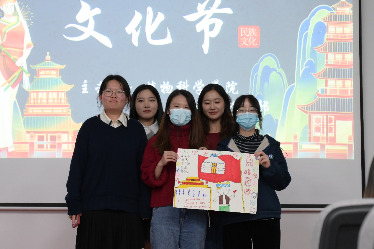 进入游戏环节,同学们跃跃欲试,纷纷举手抢答,气氛热烈。最后,答对的同学获得了由学生会准备的精美小零食,大家脸上都浮现着灿烂的笑容。“听歌识曲”环节中,主持人随机播放少数民族歌曲,在歌曲停下之后同学们举手抢答。一曲曲富有特色的民族歌曲中,同学们感受多样民族文化的魅力,让同学们在欢乐中对各民族有了更深层次的了解。在“争做民族文化宣传大使”手绘环节,同学们自行组队,在素描纸上绘图并用民族文字写下有关宣传民族团结的语句,一幅幅生动的作品展示在同学们面前。不同的绘画内容和文字,都鲜明地表达了同一个主题——民族团结。最后,在工作人员的组织下,同学们品尝了各民族的特色美食,“民族文化节”也在大家在的欢声笑语中圆满结束。