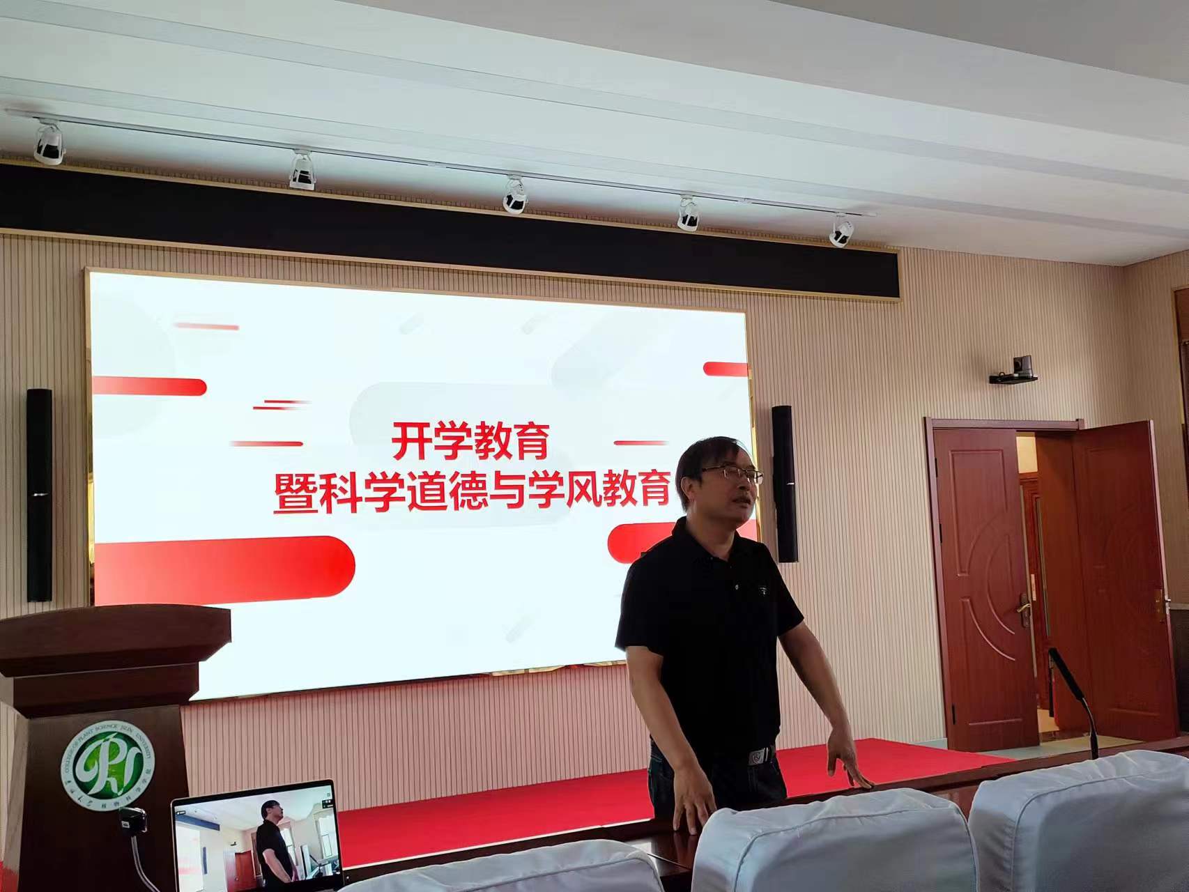 研究生新生入学教育是开启科研生活的第一课,为指导和帮助研究生新生尽快了解和适应新环境、明确学习目的、端正学习态度、科学规划学习生活,顺利完成角色转变,扣好研究生学习时期第一粒扣子,best365中国官方网站于2023年8月25日开展了研究生新生入学教育暨科学道德与学风教育。本次会议由研究生辅导员邓松主持,同时邀请副院长秦建春以及科研办主任许矛老师参加,入学教育以线上线下相结合的方式开展,覆盖全体研究生新生。